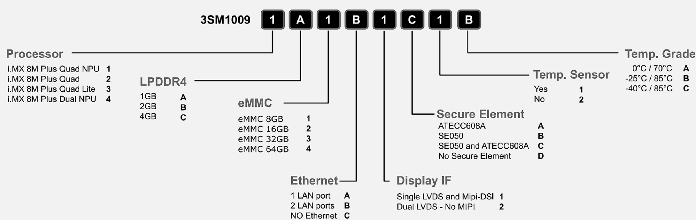 3SM10091A1B1C1B i.MX 8M Plus Quad NPU, 1GB LPDDR4, 8GB eMMC, 2 Gigabit LAN Ports, Single LVDS and MIPI-DSI, SE050, ATECC608A, Temp Sensor, Extended.