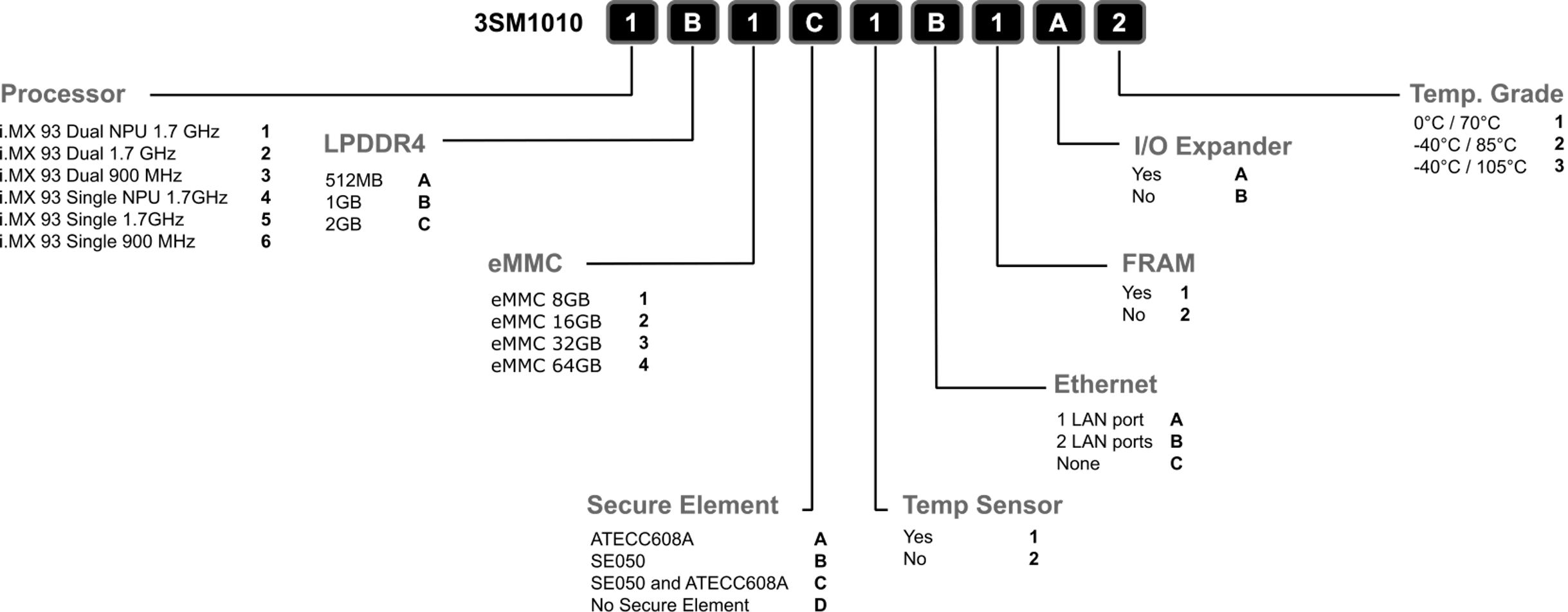 3SM10101B1C1B1A2 i.MX 93 Dual NPU 1.7GHz, 1GB LPDDR4, 8GB eMMC, SE050, ATECC608A, Temp Sensor, 2 LAN Ports, FRAM, I/O Exp, Industrial Grade
