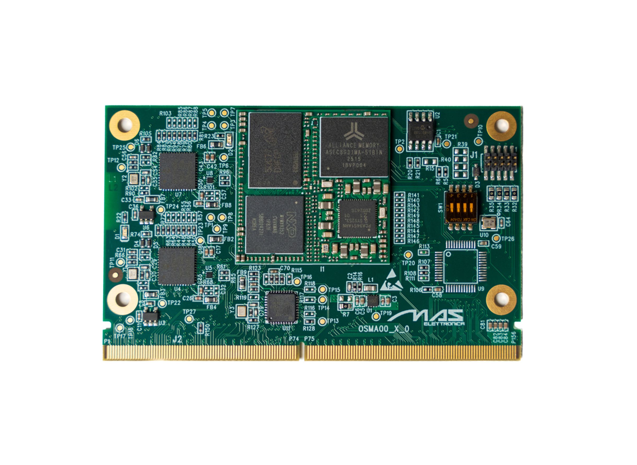 MAS Elettronica è orgogliosa di presentare MAS OSM SMARC ADAPTER i.MX93, il nuovo prodotto dedicato alla famiglia .MX93xx di NXP, un processore dual-core ARM Cortex-A55™ da 1,7 GHz integrato con una NPU da 0,5 TOP/s che accelera notevolmente l’inferenza dell’apprendimento automatico. Per le applicazioni industriali, il controllo in tempo reale è consentito da un Arm® Cortex-M33 integrato a 250 MHz. L’ADAPTER è conforme alle specifiche SMARC 2.11.